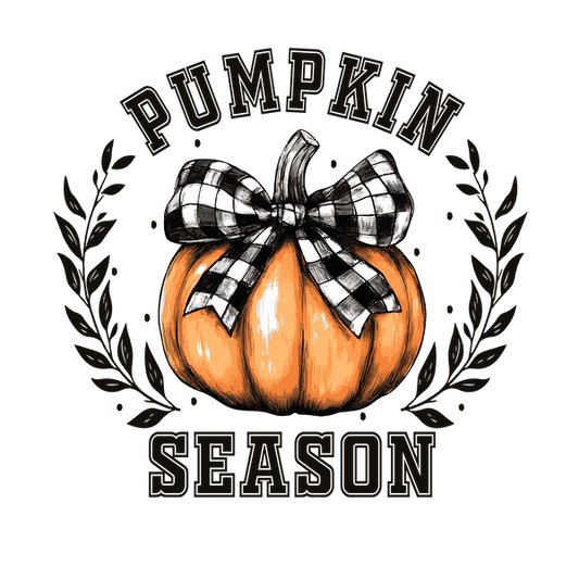 Celebre el espíritu otoñal con esta encantadora ilustración que presenta una calabaza adornada con un lazo a cuadros y las letras "Pumpkin Season".