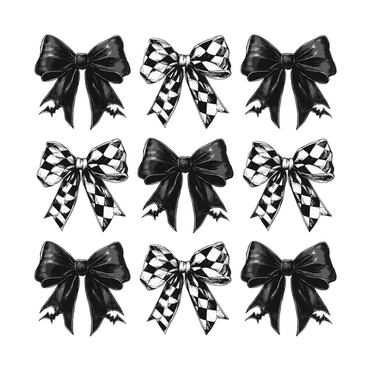 Una elegante colección de lazos en blanco y negro con patrones tanto lisos como de tablero de ajedrez, perfectos para una decoración única.