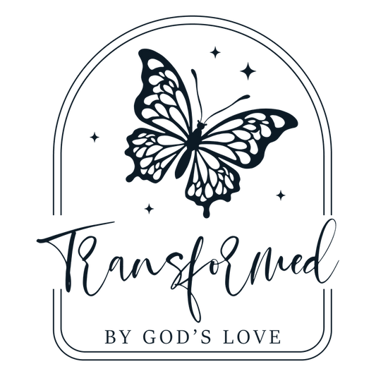 A beautiful logo featuring a butterfly and the uplifting phrase "Transformed by God's Love," symbolizing personal transformation and hope.DTF Transfers