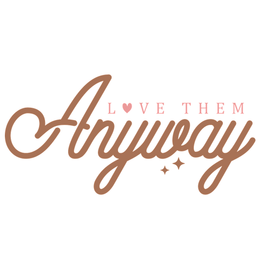 A stylish, heartwarming design featuring the phrase "Love Them Anyway" in a cursive, playful script.DTF Transfers