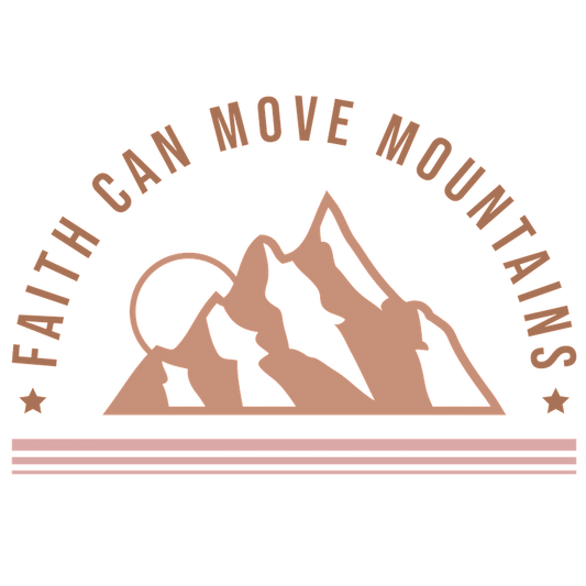 A motivational graphic featuring the phrase "Faith Can Move Mountains" with stylized mountain imagery and a warm color palette.DTF Transfers