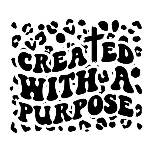 A vibrant and inspiring design featuring the words "Created with a purpose" alongside a simple cross, ideal for motivational decor.DTF Transfers