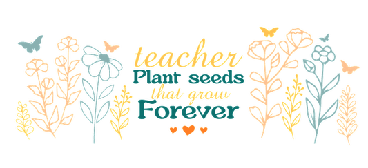 Here is Showing colourful text with the word educator and blue flowers.UV Transfers