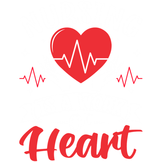Celebrate the spirit of nursing with this vibrant design featuring a heart and hands, proclaiming "Nursing is a work of heart."DTF Transfers