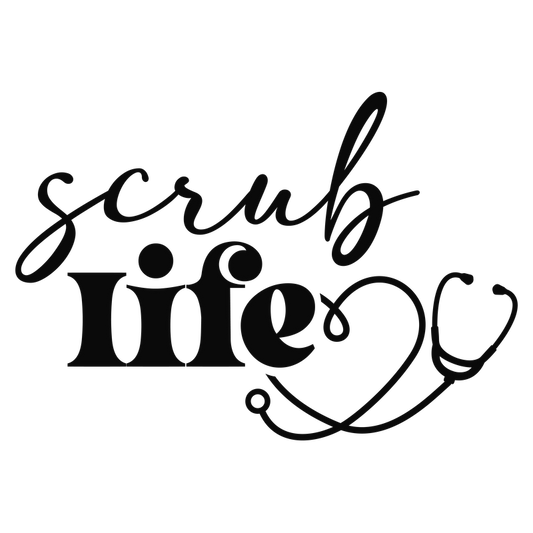 A stylish and heartfelt design featuring the phrase "scrub life" alongside a stethoscope, perfect for healthcare professionals.DTF Transfers