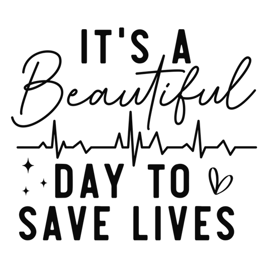A motivational and stylish text design that encourages action, featuring the phrase "It's a beautiful day to save lives" with a heartbeat graphic.DTF Transfers