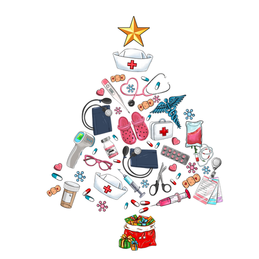 Celebrate the season with a festive, nurse-themed Christmas tree made of medical tools, accessories, and a cheerful gift bag!DTF Transfers