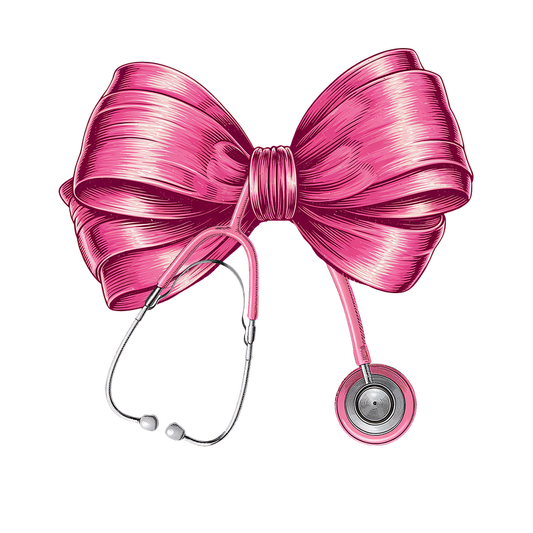 A playful pink bow intertwined with a stethoscope, combining elegance with a nod to the medical profession.DTF Transfers