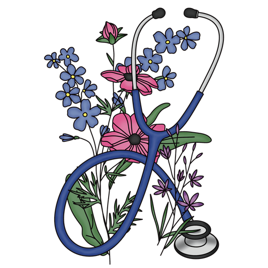 A vibrant illustration of a stethoscope intertwined with colorful flowers, symbolizing the blend of healthcare and nature.DTF Transfers