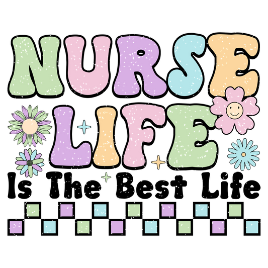 Celebrate the spirit of nursing with this colorful "Nurse Life" design, featuring playful typography and cheerful flowers!DTF Transfers