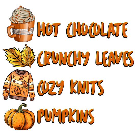 ¡Celebre las acogedoras vibraciones del otoño con chocolate caliente, hojas crujientes, tejidos acogedores y calabazas vibrantes!