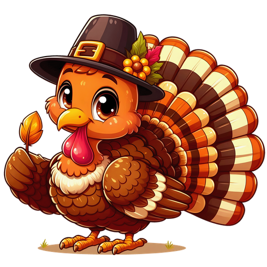 Precio habitual A partir de £0.75 GBPPrecio habitualPrecio unitario / por£2.40 GBPPrecio de oferta A partir de £0.75 GBPUn lindo pavo de dibujos animados con un sombrero de peregrino y sosteniendo una hoja, celebrando el Día de Acción de Gracias con colores vibrantes y una expresión alegre.