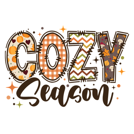 Diseño cálido y festivo "Cozy Season" con patrones divertidos en colores otoñales, ¡perfecto para celebrar las vibraciones del otoño!