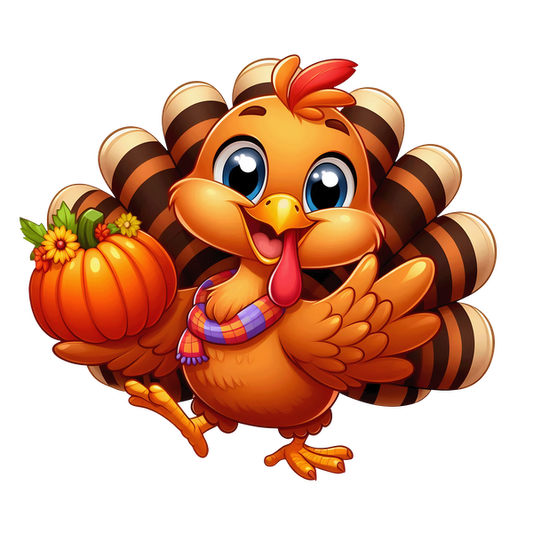 Precio habitual A partir de £0.75 GBPPrecio habitualPrecio unitario / por£2.40 GBPPrecio de oferta A partir de £0.75 GBPUn alegre pavo de dibujos animados con ojos grandes, con una bufanda y sosteniendo una pequeña calabaza, ¡perfecto para celebrar el Día de Acción de Gracias!