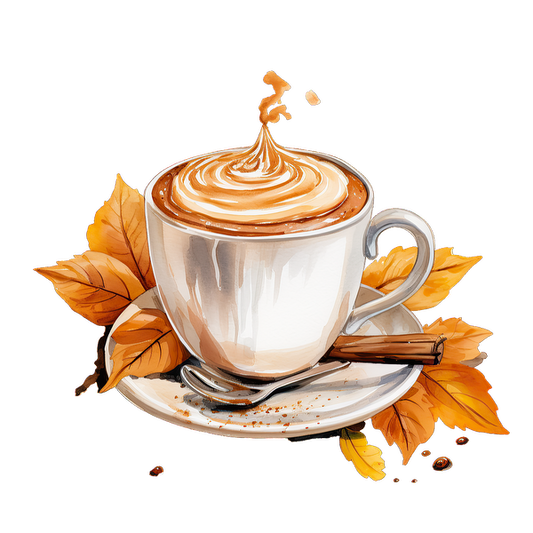 Precio habitual A partir de £0.75 GBPPrecio habitualPrecio unitario / por£2.40 GBPPrecio de oferta A partir de £0.75 GBPUna deliciosa taza de café con especias de calabaza cubierta con crema batida, adornada con una cinta, rodeada de hojas de otoño y granos de café.