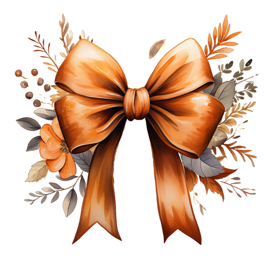 Un hermoso lazo naranja adornado con flores y vegetación, perfecto para decoración festiva o para envolver regalos.