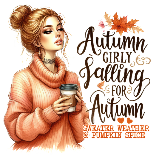 Una acogedora ilustración de una niña con un suéter cálido disfrutando de una especia de calabaza, celebrando la belleza del otoño.