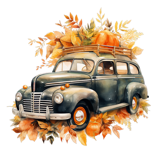 Precio habitual A partir de £0.75 GBPPrecio habitualPrecio unitario / por£2.40 GBPPrecio de oferta A partir de £0.75 GBPUna camioneta vintage verde adornada con hojas de otoño y una calabaza sobre su portaequipaje de madera, capturando el encanto del otoño.