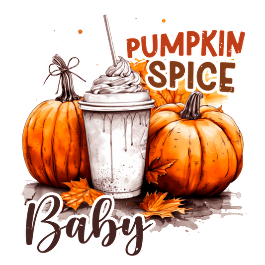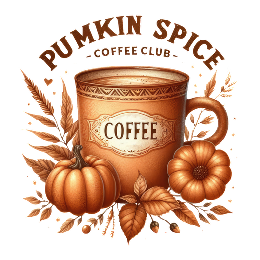Las acogedoras vibraciones otoñales brillan a través de esta taza de café con especias de calabaza, bellamente adornada con hojas de otoño y calabazas.