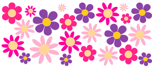 This image features a delightful assortment of vibrant flower stickers.UV Transfers