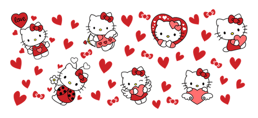 Hello Kitty Valentine's Day decorations feature hearts and various poses.UV Transfers