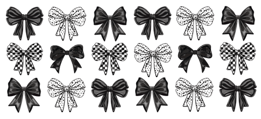 A set of different patterned black, white, and checkered bows.UV Transfers