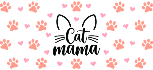A black blanket with pink hearts and paw prints frames the phrase "Cat Mama".UV Transfers