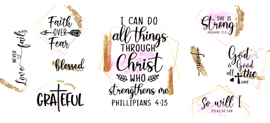 Faith bracelets feature hand-painted calligraphy and meaningful proverbs.UV Transfers