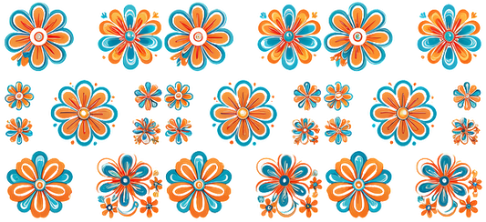 A vibrant collection of orange and turquoise flowers in various sizes and styles, perfect for decorative use.UV Transfers dtf prints
