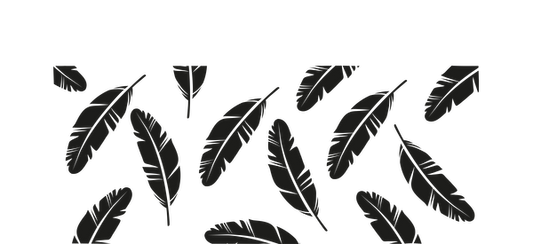 Una elegante ilustración de plumas negras esparcidas sobre un fondo claro, perfecta para fines decorativos o artísticos. Transferencias UV