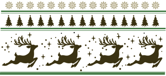 Un diseño de borde festivo con renos, árboles de Navidad y copos de nieve, perfecto para decoraciones navideñas o proyectos de manualidades. Transferencias UV