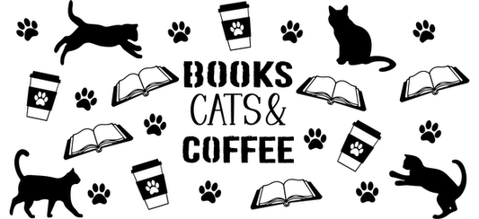 Un diseño vibrante y divertido que presenta la frase "Café, ENSEÑAR, Repetir", rodeada de divertidas ilustraciones de libros, granos de café y lápices. Transferencias UV