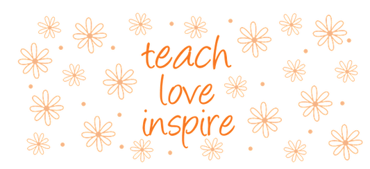 Un diseño motivacional que presenta las frases "enseñar", "amar" e "inspirar", rodeadas de patrones florales decorativos. Transferencias UV