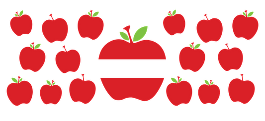 Una vibrante colección de manzanas rojas que presenta una manzana central estilizada con hojas verdes, ¡perfecta para un diseño frutal! Transferencias UV