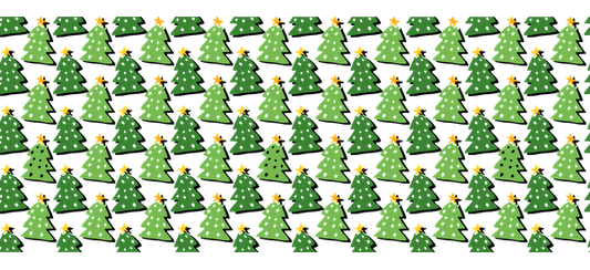 Un patrón festivo de árboles de Navidad de dibujos animados coloridos con adornos de estrellas, perfecto para diseños o decoraciones con temas festivos. Transferencias UV