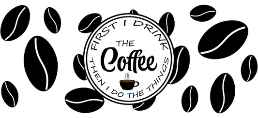 Una encantadora ilustración con la frase "Todo lo que necesito es amor y mi café", perfecta para los amantes del café. Transferencias UV