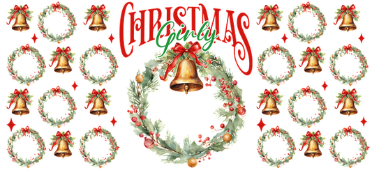 Un diseño festivo que presenta coronas navideñas adornadas con campanas y vegetación, resaltadas por el divertido texto "Girly". Transferencias UV