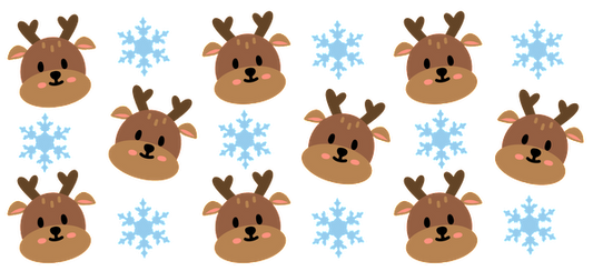 Un patrón divertido con adorables caras de renos y copos de nieve azules, ¡perfecto para diseños festivos! Transferencias UV