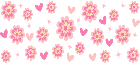 Un encantador patrón de flores y corazones rosas, perfecto para diseños alegres y decoraciones con temática primaveral. Transferencias UV