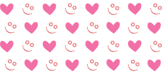 Un patrón divertido con corazones rosas y caras sonrientes, perfecto para agregar un toque alegre a cualquier diseño. Transferencias UV