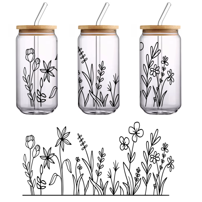 Una silueta negra minimalista de un gato en una pose juguetona, que enfatiza su forma elegante y su cola curva. Transferencias UV
