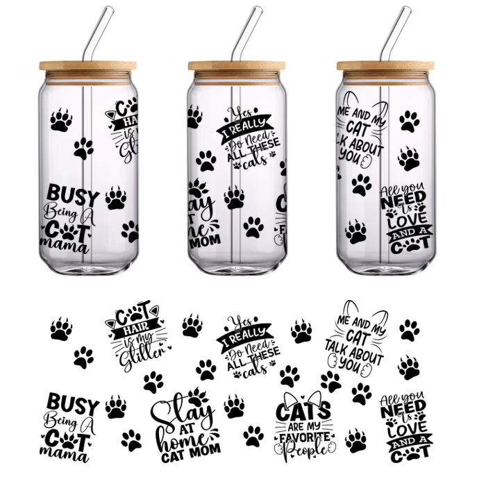Una silueta negra minimalista de un gato, que muestra su postura elegante y sus características distintivas. Transferencias UV