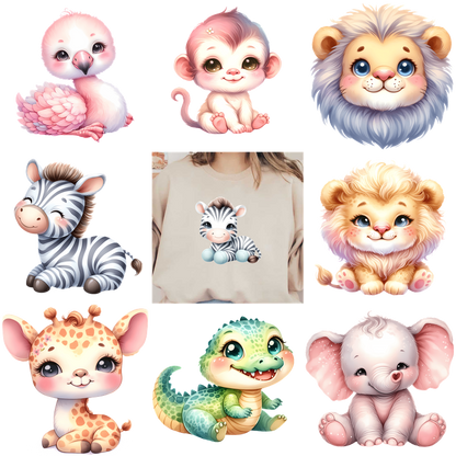 A white T-shirt features an adorable baby zebra design.DTF Transfers