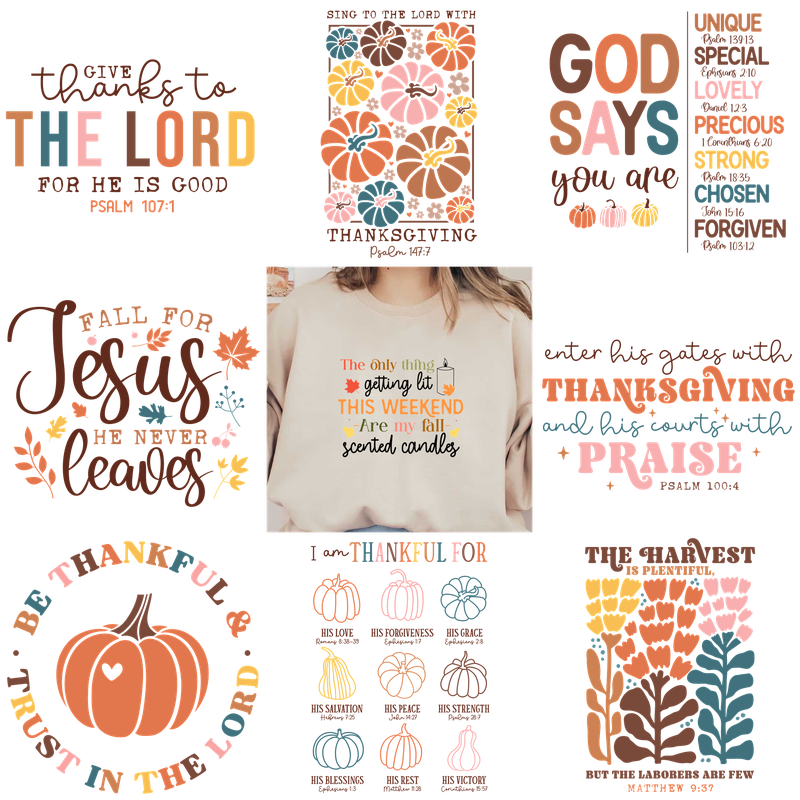 Cozy fall sweatshirt featuring playful seasonal phrases and autumn motifs.DTF Transfers