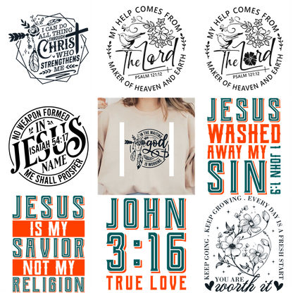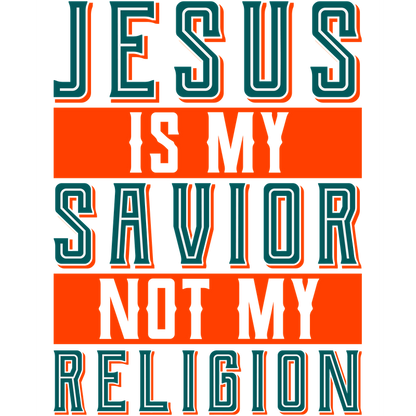 "Jesus is My Savior" t-shirt design with Bible verse in blue and orange.DTF Transfers