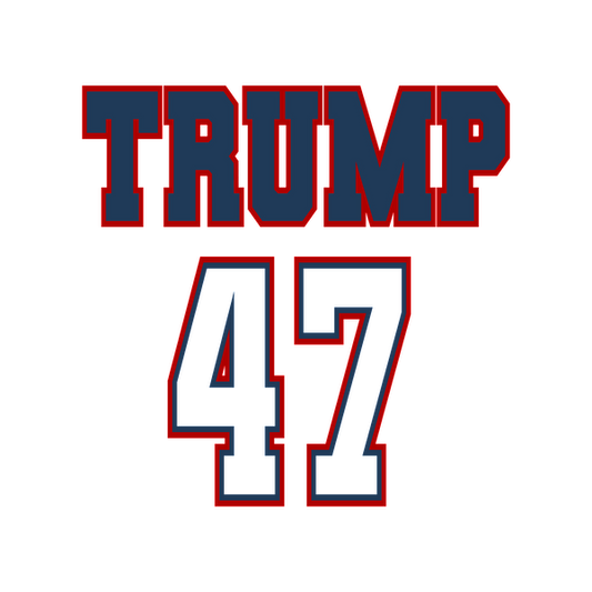 Bold graphic design featuring the name "TRUMP" and the number "47," suggesting a sports or campaign theme. dtf transfers