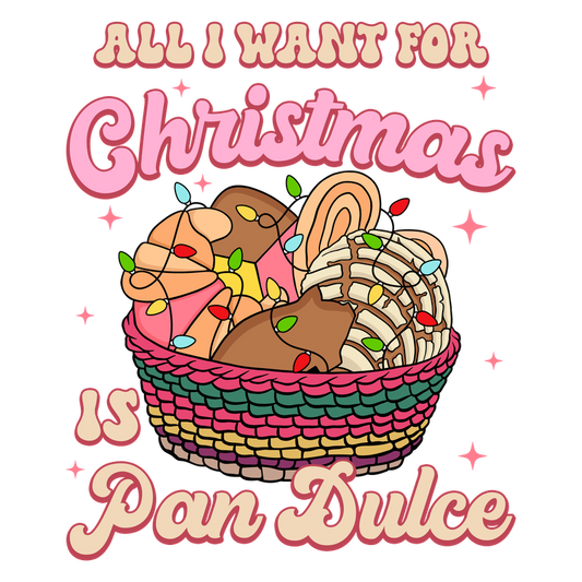 Celebrate the holiday season with a playful design featuring a basket of colorful pan dulce and cheerful holiday lights!DTF Transfers heat press transfers