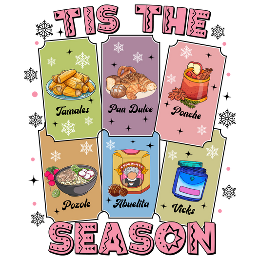 "Celebrate the season with delicious traditional treats like tamales, pan dulce, ponche, pozole, Abuelita chocolate, and Vicks!"DTF Transfers heat press transfers
