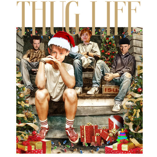Prix habituel À partir de £0.75 GBPPrix habituelPrix unitaire / par£2.39 GBPPrix promotionnel À partir de £0.75 GBPA festive holiday-themed image featuring a group of friends sitting on stairs, surrounded by decorations and colorful presents, with a playful "Thug Life" caption.DTF Transfersdtf regular iron dtf prints