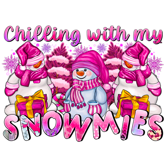 Celebrate the holiday spirit with this playful design featuring cheerful snowmen dressed in cozy pink scarves and gifts.DTF Transfers heat press transfers